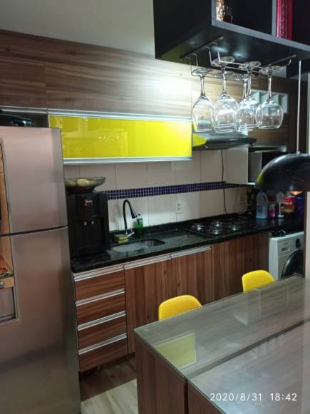 O imóvel possui móveis planejados na cozinha, área de serviço, no quarto e no banheiro.